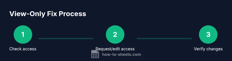 When a Google Sheet opens as view-only, editing is blocked by the file owner’s permissions or organizational controls. This isn’t a flaky browser issue; it’s a permission state set on the document. According to How To Sheets, most view-only cases come from sharing configurations or domain restrictions, not from a broken link or a faulty account. Understanding the root cause helps you pick the right remedy quickly and avoid unnecessary toggling between accounts. In this section we’ll demystify the view-only state and set up a reliable path to regain editing rights while preserving data integrity.