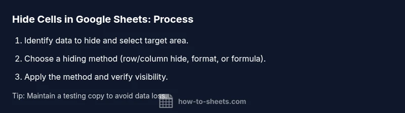 Hiding cells in Google Sheets is a practical skill for managing visibility in shared workbooks. You might want to hide confidential data before presenting a dashboard, keep intermediate calculations out of sight, or simplify a complex sheet for non-technical collaborators. The goal is to make information less distracting without deleting it. There are several reliable approaches to hide cells in google sheets, each with trade-offs in accessibility, auditability, and risk. In this guide, we’ll explore when to use rows or columns, when to apply formatting tricks, and how to combine methods safely. By the end, you’ll know which technique fits your scenario and how to test it to avoid accidental data exposure. Remember, the phrase hide cells in google sheets can refer to both visual concealment and data protection; choosing the right method depends on your sharing settings and the sensitivity of the data.