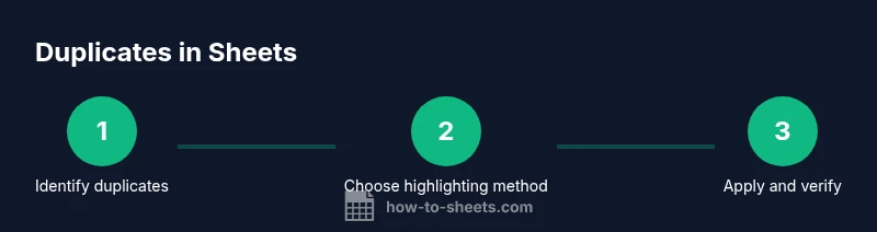 You will learn how to highlight duplicate values in Google Sheets using built-in tools like conditional formatting and formulas. This quick answer previews the two reliable approaches, explains when to use each, and highlights common pitfalls to avoid, so you can quickly improve data quality without altering your original data.