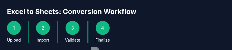 According to How To Sheets, you can convert an Excel workbook to Google Sheets by uploading via File > Import in Sheets (or opening with Sheets), then adjusting formulas and formatting as needed. Use the built-in import to preserve data types, and consider a follow‑up step with Google Apps Script for complex conversions. This approach minimizes manual rewriting while supporting multiple worksheets and data integrity.