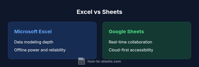 Both Microsoft Excel and Google Sheets are powerful spreadsheet tools, but the best choice depends on your workflow. When comparing microsoft excel vs google sheets, consider collaboration needs, data size, and automation capabilities. For heavy data modeling and offline reliability, Excel generally offers deeper features. For real-time collaboration and cloud access, Sheets shines. This How To Sheets overview helps students, professionals, and small business owners decide quickly.
