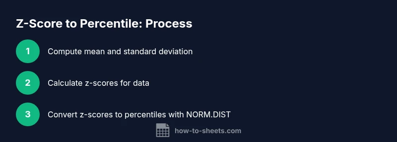 Learn to convert a z-score to percentile in Google Sheets using NORM.DIST. This step-by-step guide covers formulas, examples, and common pitfalls.
