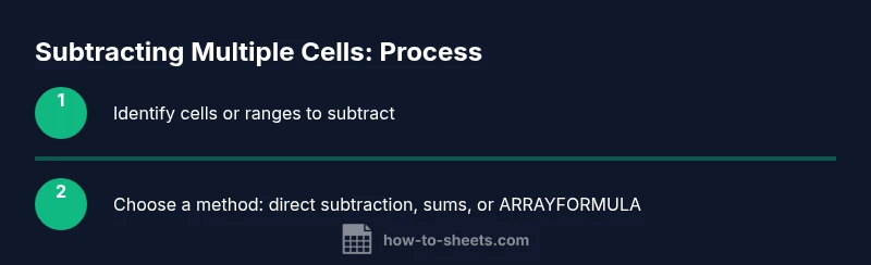 According to How To Sheets, mastering how to subtract multiple cells in google sheets is a foundational skill for accurate budgeting, reconciliations, and data analysis. The ability to subtract whole groups instead of one cell at a time saves time and reduces manual errors, especially when handling multi-period dashboards or project trackers. In practical terms, you can compare totals, compute net changes, or derive performance deltas with compact, auditable formulas. The approaches described here are based on common patterns that work across small and large datasets, and they scale well when you automate with templates. How To Sheets analysis shows that practitioners who adopt group-based subtraction workflows report clearer, more reliable results in spreadsheets used for decision-making.