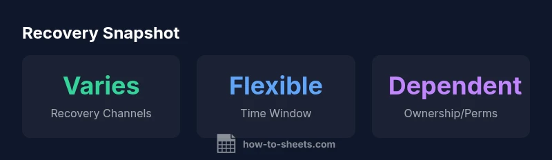 For many users, the question can deleted google sheets be recovered is urgent after a file disappears. In practice, the answer depends on how and where deletion happened. If the file was simply moved to Google Drive’s Trash, recovery is often straightforward. If the Trash was emptied or the file was permanently removed, you still have options, but success is less certain. According to How To Sheets, understanding the recovery landscape requires knowing three core mechanisms: Drive Trash, version history, and admin or backup pathways. The key idea is that Google Sheets retains recovery hooks even after a deletion, but they are not a guarantee. By following disciplined steps, you can maximize your chances of restoration without contacting support or losing edits. This article dissects the mechanics, outlines practical steps, and shares best practices to minimize data loss in the future.
