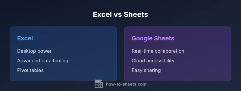 According to How To Sheets, the decision often hinges on offline access, the number of simultaneous editors, and how deeply you need to integrate with other apps. Throughout this guide you’ll see concrete examples, step-by-step recommendations, and best practices you can apply without needing a specialist. This is not about choosing one tool forever; it’s about understanding which tool fits which task and when to use both in a complementary way.