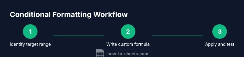 Use a small set of well-documented rules to keep your sheet maintainable. Always test on a sample subset before rolling out to the full data. If you use multiple rules, place the most critical condition last to ensure it takes precedence when needed. Document what each rule does and which cells it covers; this is especially important in collaborative sheets where others will edit later. The How To Sheets approach emphasizes building templates that others can adapt easily while retaining the core logic of conditional formatting based on another cell.