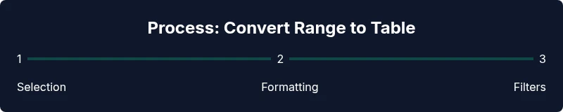 Convert a data range into a table-like view in Google Sheets by applying a bold header, adding borders, and enabling a filter view for quick sorting. This approach creates a clean, reusable layout that supports sorting, filtering, and basic analysis without introducing a database or scripting. No coding is required—just built-in formatting and features.