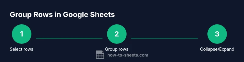 The core approach to google sheets group rows is to use the built-in outline feature. Start by selecting the contiguous set of rows you want to collapse, then choose Data > Group Rows. Sheets will add a collapsible outline bar on the left with a minus icon that lets you collapse the group and a plus icon to expand it. This method is ideal for creating lightweight sections within a single sheet, such as separating an itemized budget from totals or organizing a class roster by semester.