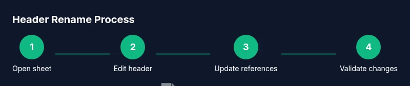 Preparation reduces risk. Start by creating a backup copy of the sheet or workbook so you can roll back if needed. Audit the header row to confirm each column’s purpose and ensure there are no duplicate header names that could cause confusion in filters or lookups. If you rely on data validation rules, ensure the new header labels don’t clash with existing named ranges or validation criteria. Document the intended new names in a quick notes section or a changelog, so teammates understand the rationale behind the rename. Finally, announce the planned change to collaborators if the sheet is shared; coordinated renames minimize confusion during the transition.