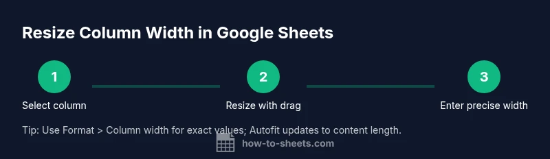 A clean, readable spreadsheet is easier to scan and interpret. When columns are too narrow, numbers get truncated or wrap awkwardly; when they are too wide, you waste horizontal space and create unnecessary scrolling. The simple action of setting an appropriate column width can dramatically improve readability, printing layouts, and data comparison across rows. The How To Sheets team has found that consistent column widths support quick scanning of key metrics and help maintain professional formatting in reports. In practice, you’ll often adjust widths to reflect the typical content in a column—text fields need more space than short codes, while numeric columns should align on the right. You’ll also want to consider how your sheet will be viewed: on laptop screens, large monitors, or printed on paper; each scenario benefits from deliberate width choices. In short, setting the right column width is not cosmetic; it’s a data-clarity decision that underpins effective communication in spreadsheets.