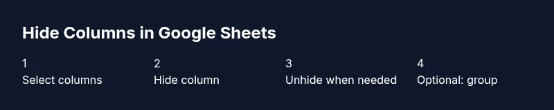 By the end of this guide you will know how to hide and unhide columns in google sheets, compare hiding with filtering, and apply visibility controls for shared spreadsheets. You will learn practical methods, keyboard-agnostic steps, and best practices to keep data accessible while reducing clutter. The focus is on safe, repeatable actions you can perform in any sheet.