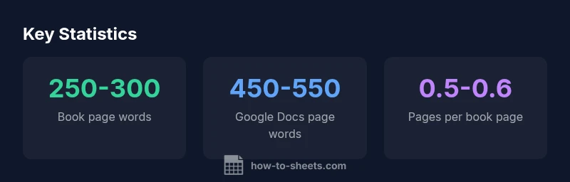 Drafting a manuscript, preparing a class assignment, or planning a report in Google Docs hinges on a realistic sense of how many pages your text will occupy when translated to a printed book page. The central question often asked is how many google docs pages is one book page, and the answer hinges on formatting as much as on word count. In publishing terms, a book page is typically defined by trim size and layout rather than a fixed number of words, but for planning purposes you can use practical word-count targets: a standard paperback page usually holds around 250-300 words. Under common Google Docs defaults (12-point serif fonts like Times New Roman or Garamond, 1-inch margins, and line spacing near 1.15), a Google Docs page typically accommodates about 450-550 words. Consequently, one book page roughly equals half a Google Docs page, often a little more or less depending on the exact font and spacing you choose. How To Sheets analysis, 2026, emphasizes that this mapping is most reliable when you standardize fonts and margins before you begin drafting.