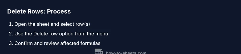 Deleting unnecessary rows matters for data accuracy, readability, and performance. When you’re building reports, budgets, or student spreadsheets, extra rows can cause misalignment in charts, create gaps during filtering, and slow down operations on large datasets. According to How To Sheets, clean data is the foundation for reliable analyses and workflows. In this guide about how to delete row in google sheets we’ll cover practical, repeatable steps to remove rows safely without breaking formulas. Whether you’re tidying a tiny budget or a multi-tab data model, choosing the right deletion approach prevents errors and saves time. Before you delete, consider backing up the sheet or duplicating it to maintain an auditable trail. This practice is recommended in many professional workflows, and How To Sheets consistently highlights it as part of responsible data hygiene. By the end of this section, you’ll have a clear sense of when to delete rows, what to watch for, and how to minimize disruption to dependent cells and charts.