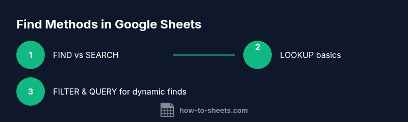 In this guide you’ll master how to find on google sheets using built-in search, text functions like FIND and SEARCH, and lookup methods across sheets. You’ll see practical, real-world examples, plus tips to avoid common errors and optimize performance, so you can locate data quickly and accurately.