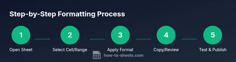 Starting with a single cell is a great way to learn the ropes. Select the cell, then open the Format menu to choose from Number, Alignment, or Fill Color options. Apply a currency format to monetary values, a date format for timestamps, or a percentage format for ratios. For text, adjust font settings and text wrap to ensure readability. The goal is to make the cell communicate its meaning at a glance. If you’re unsure, test a few formats on different data types to see how they render in your sheet. With practice, you’ll quickly switch between formats as project requirements change.