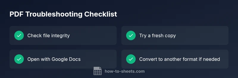 If you’re wondering why google docs can t open pdf, the root causes typically fall into a few broad categories: the file itself may be corrupted or password-protected, Google Drive’s viewer may be having a hiccup, or the document content (images, fonts, and complex layouts) exceeds what Google Docs can gracefully render. According to How To Sheets, many issues stem from file integrity or temporary service glitches, which are usually fixable with quick, repeatable steps. This section lays out the practical realities you’ll face and sets the stage for the diagnostic flow that follows. The goal is to empower you to act quickly, recover access, and prevent recurrence on future files.