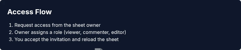 For multiple sheets, request access per file or ask for folder-level sharing when available.