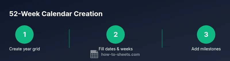 A 52-week calendar provides a single, year-wide view that helps you align long-term goals with weekly actions. For students, professionals, and small business owners, this approach reduces scattered notes and missed deadlines by consolidating timelines, milestones, and review dates into one reliable canvas. According to How To Sheets, starting with a year-long calendar encourages consistent planning habits and minimizes last-minute rushes. The How To Sheets team found that teams that adopt a uniform calendar structure experience clearer priorities and better cross-functional coordination. In practice, you’ll see how week-by-week planning translates into steady progress, fewer budget surprises, and improved accountability. This template is intentionally flexible so you can tailor headers, milestones, and ownership to your context, whether you’re tracking coursework, product launches, or quarterly initiatives.